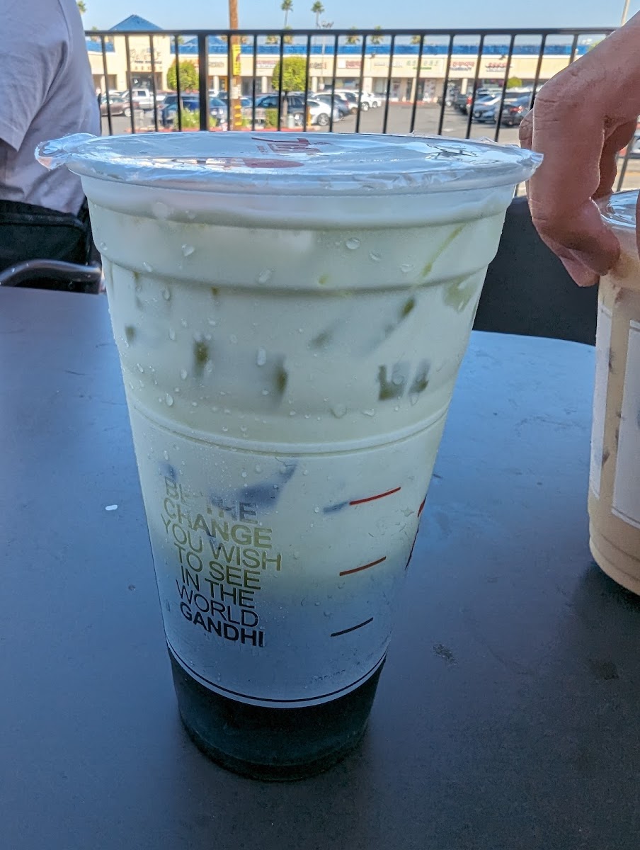 It's mainly popular for drive through but there are a few parking spots and a row table to sit at. The service was quick, even though there were only two employees taking orders and making the drinks. If you like a strong and sweet drinks, I recommend their new Green Thai Tea drink. It is quite fragrant with jasmine and has a interesting flavor. For me, it is a bit too much on side even with the lower "Easy sweet" level adjustment.